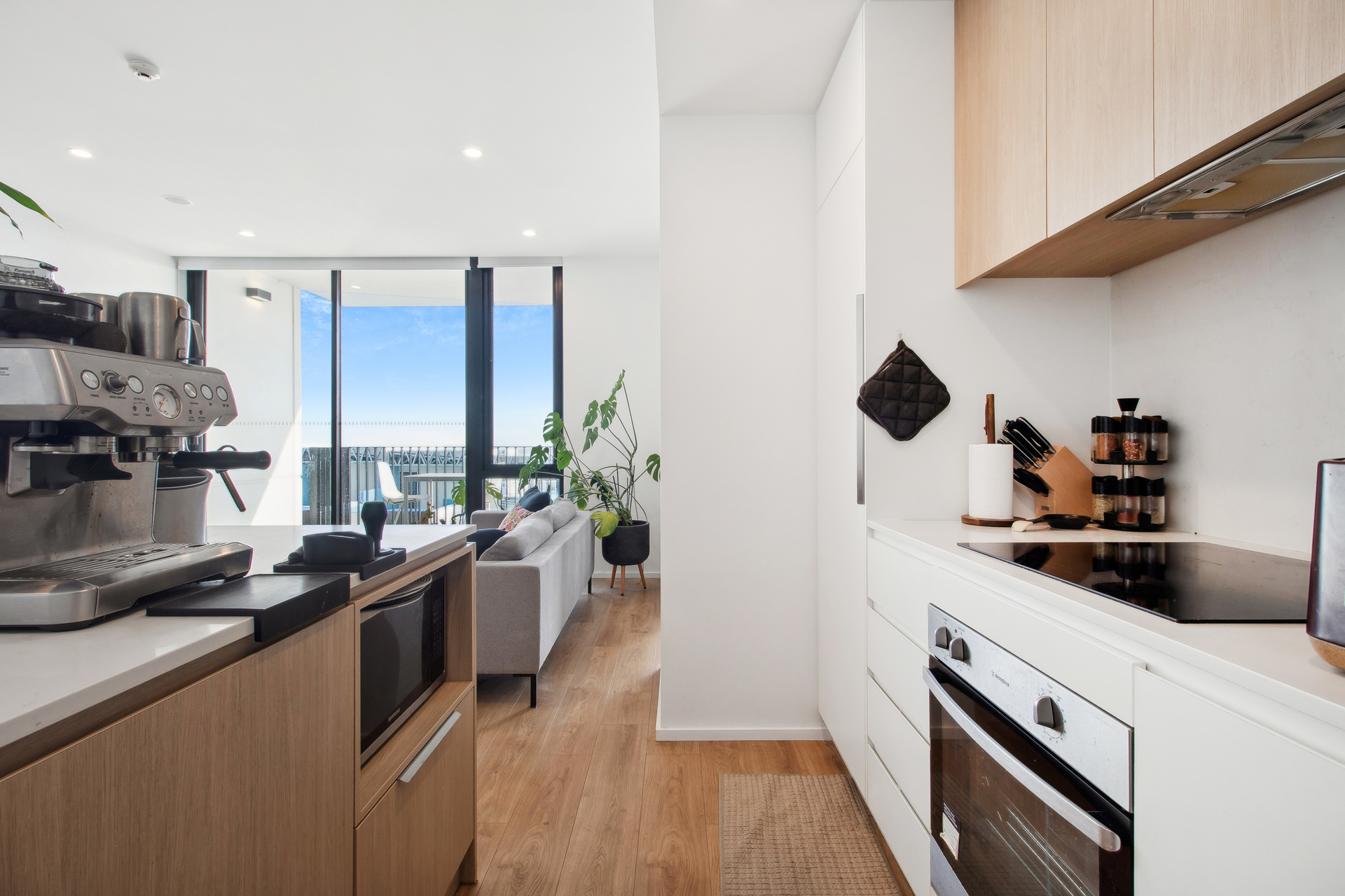 This lovely light filled modern and secure apartment offers lofty 2.7m ceilings, spacious open plan living areas and features floor to ceiling sliding doors which lead out to the generous balcony. Far reaching City, Coast and Sunset views can be enjoyed from the bedrooms, living area, kitchen and balcony.