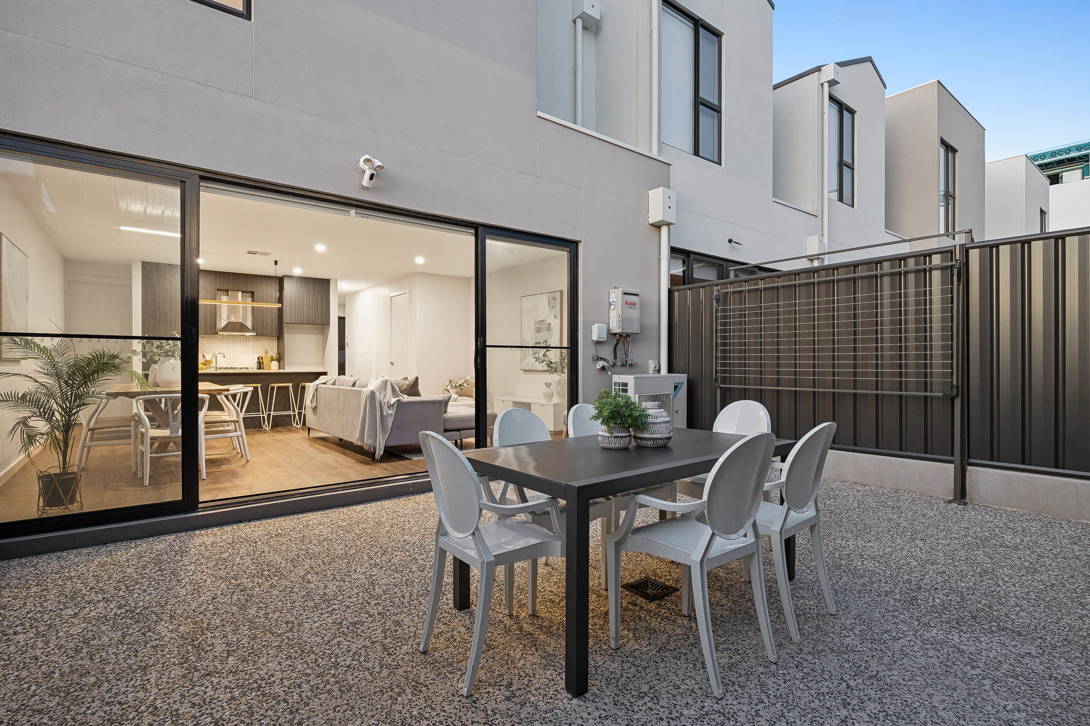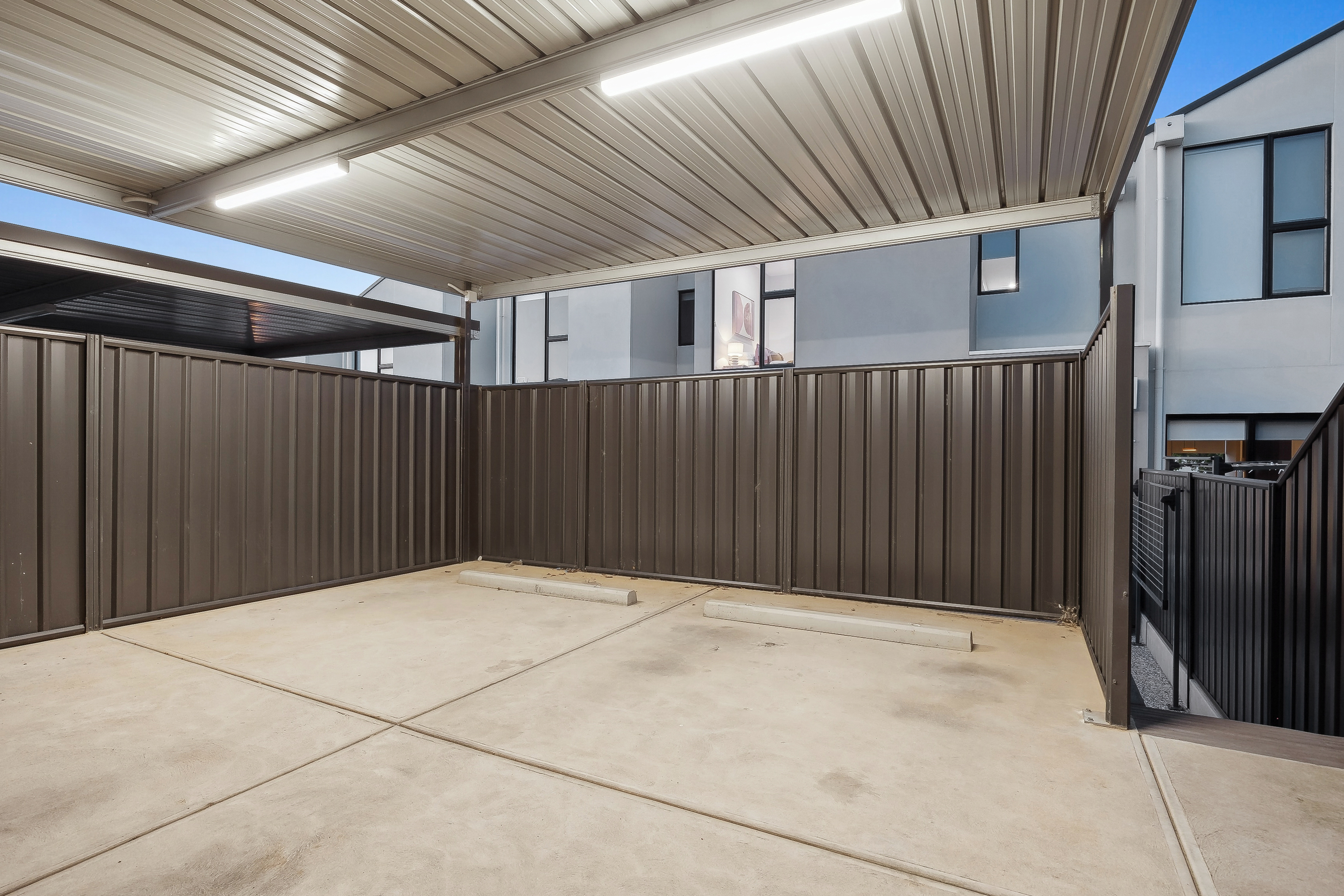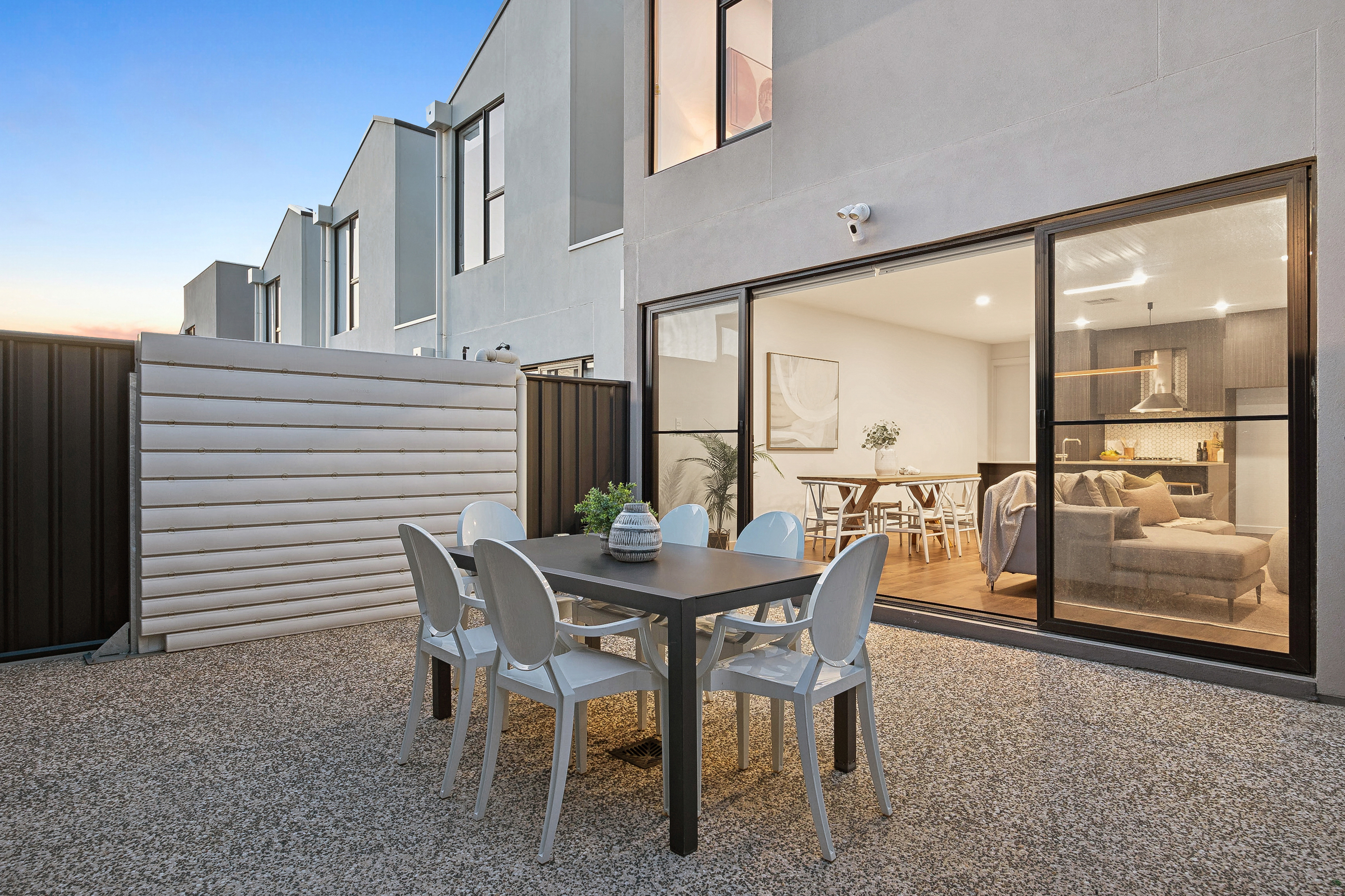 FEATURES WE LOVE • Striking contemporary geometric façade framed by established landscaping and set amongst an impressive row of unique modern homes • Dual living spaces including light-filled ground floor open plan living with large alfresco-facing windows and modern timber laminate floors, shaping a striking space to entertain or simply relax • Contemporary gourmet kitchen featuring a sleek stone-topped island bar, contrast cabinetry, feature lighting and SMEG appliances • Front-facing main bedroom with built-in robes and ensuite • Two more double bedrooms with mirrored built-in robes, plus a handy study space • Two generous modern bathrooms featuring modern colour palettes, a walk-in shower for the ensuite and a family-friendly bathtub for the main • Reverse-cycle split system A/C throughout the home for year-round comfort • Private and surprisingly generous alfresco entertaining with exposed aggregate paving • Low maintenance front yard with regulated front lawn • Ground floor powder room for guest convenience, dedicated laundry and storeroom • Double carport with roller door practically accessed via rear laneway • 18 Solar Panels - 6.6KW system