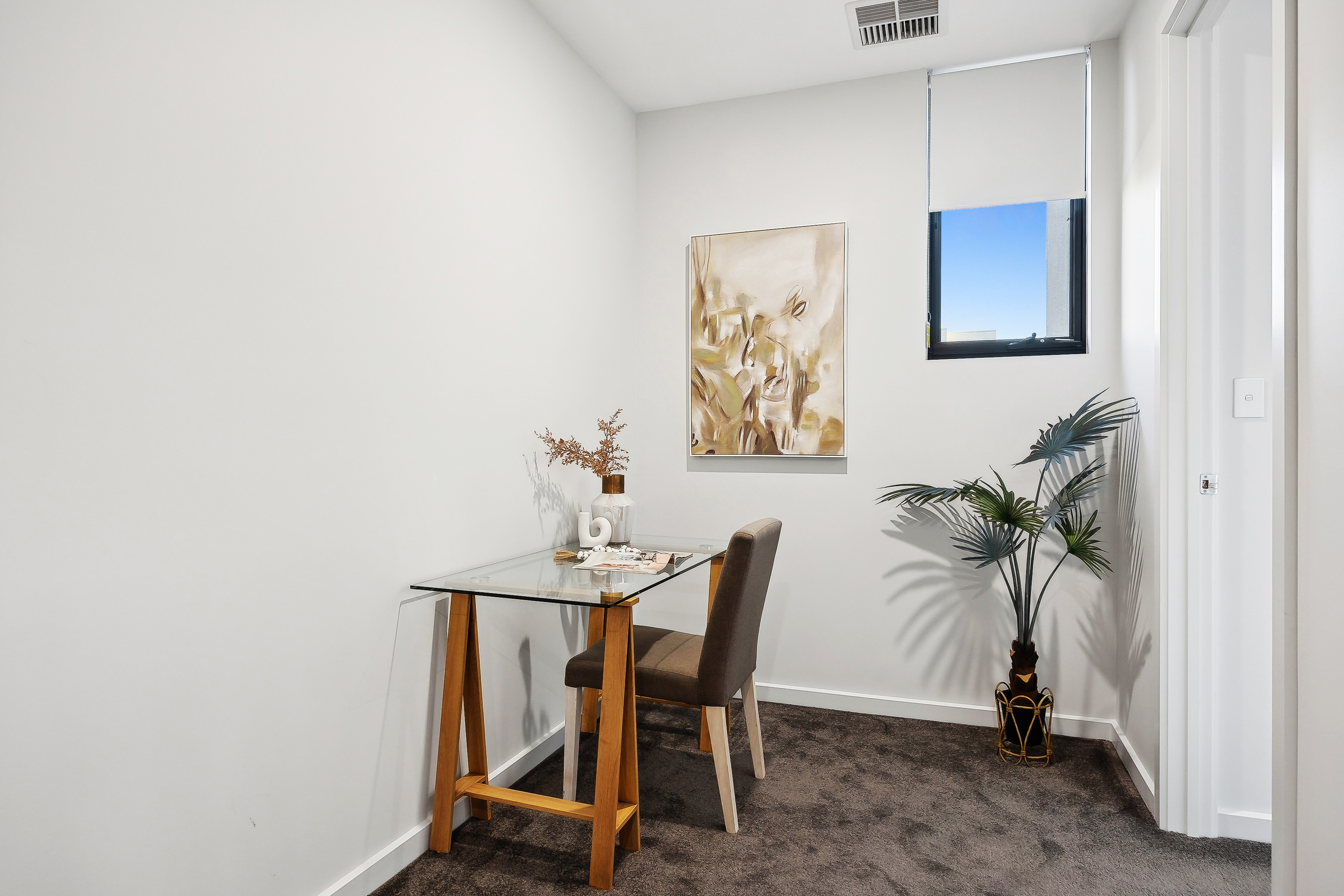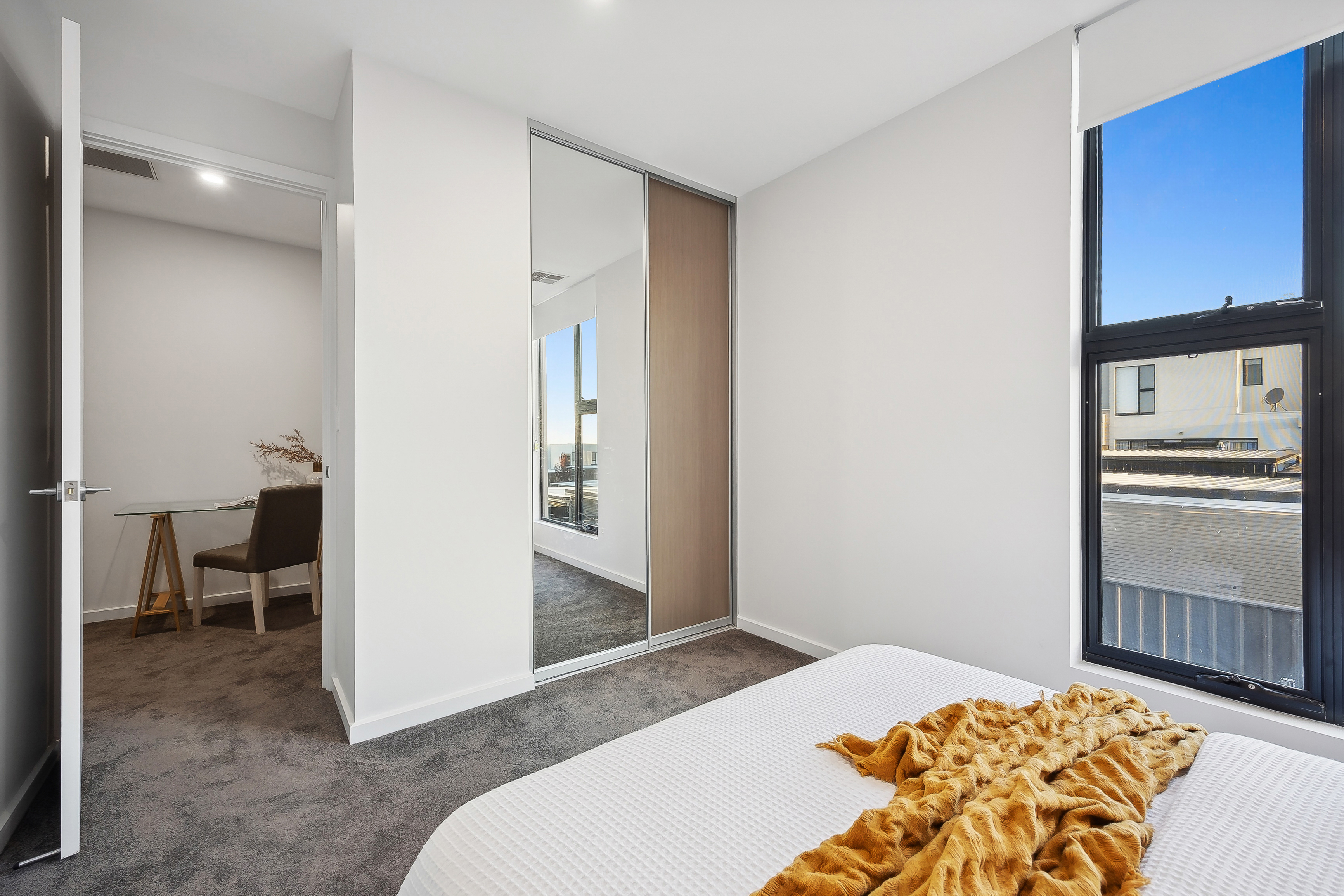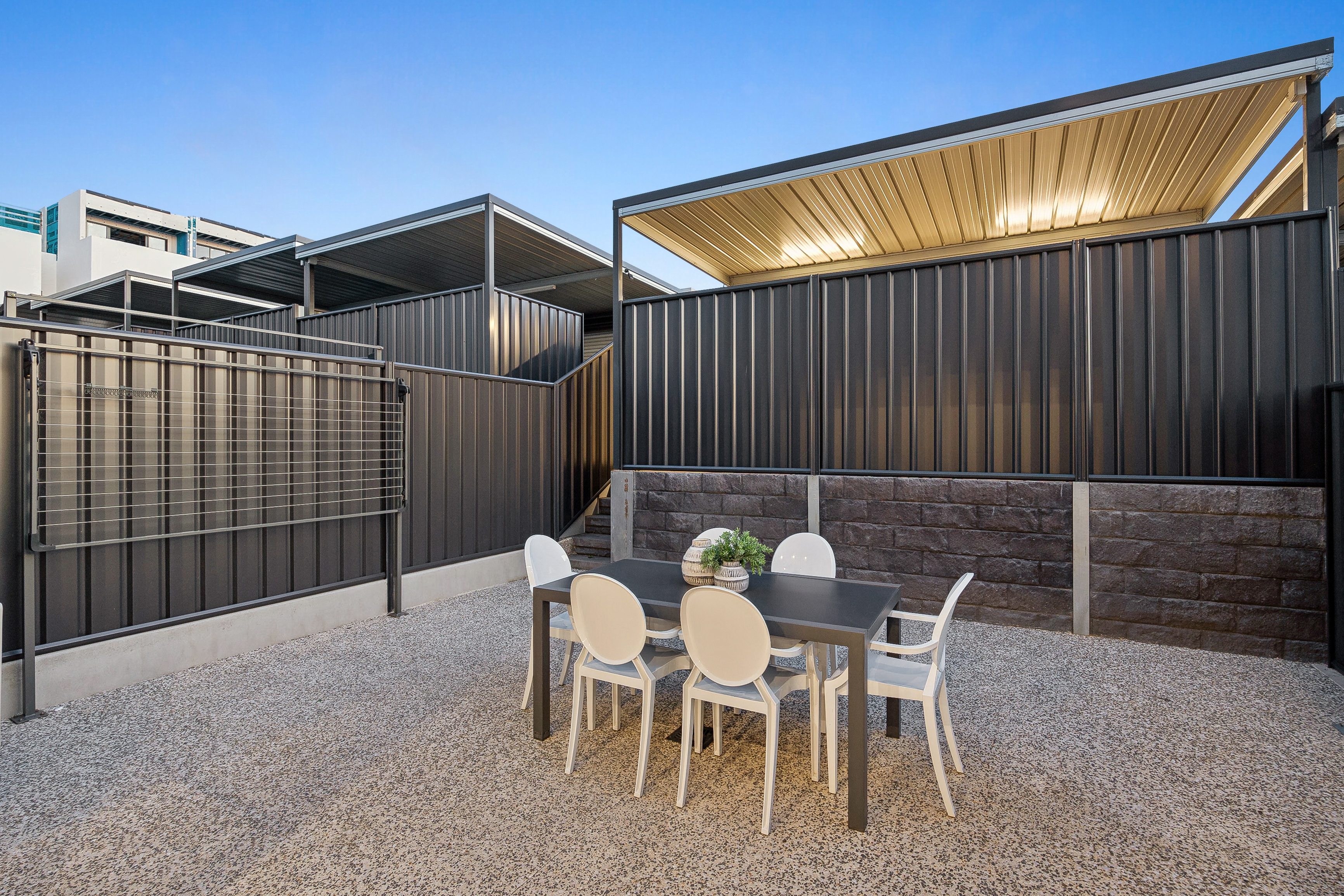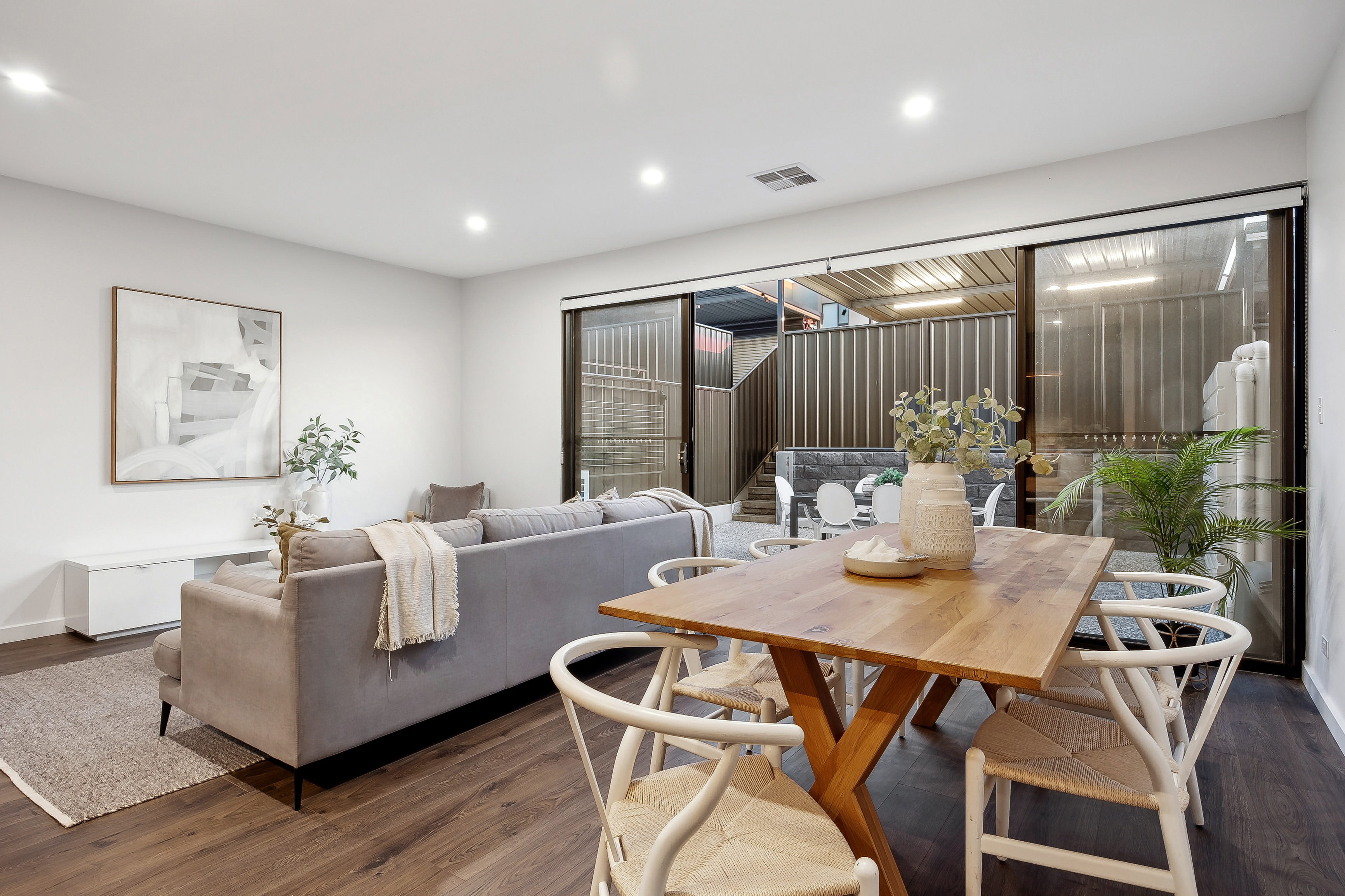 FEATURES WE LOVE • Striking contemporary geometric façade framed by established landscaping and set amongst an impressive row of unique modern homes • Dual living spaces including light-filled ground floor open plan living with large alfresco-facing windows and modern timber laminate floors, shaping a striking space to entertain or simply relax • Contemporary gourmet kitchen featuring a sleek stone-topped island bar, contrast cabinetry, feature lighting and SMEG appliances • Front-facing main bedroom with built-in robes and ensuite • Two more double bedrooms with mirrored built-in robes, plus a handy study space • Two generous modern bathrooms featuring modern colour palettes, a walk-in shower for the ensuite and a family-friendly bathtub for the main • Reverse-cycle split system A/C throughout the home for year-round comfort • Private and surprisingly generous alfresco entertaining with exposed aggregate paving • Low maintenance front yard with regulated front lawn • Ground floor powder room for guest convenience, dedicated laundry and storeroom • Double carport with roller door practically accessed via rear laneway • 18 Solar Panels - 6.6KW system