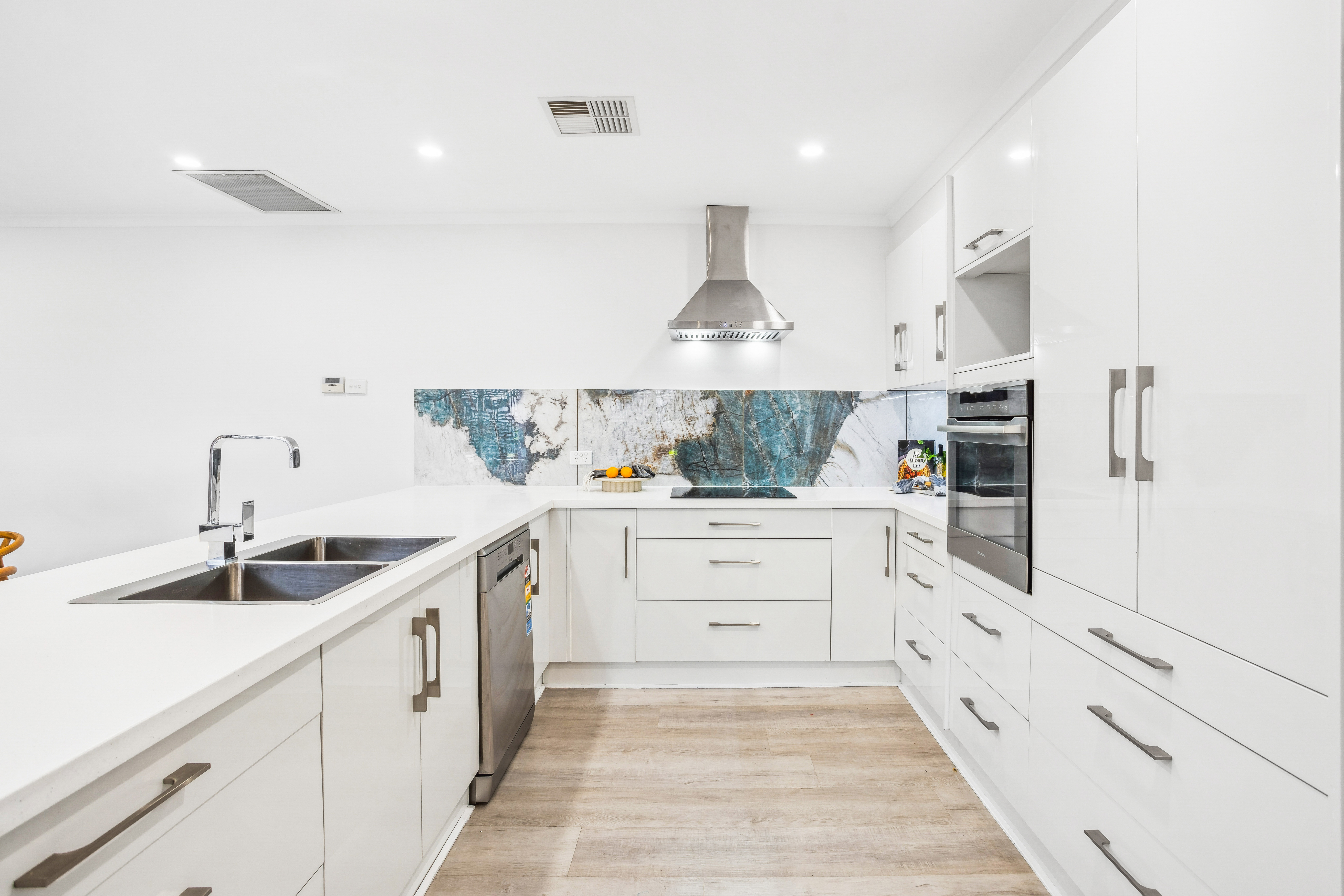 - New laundry with ample built in cupboards